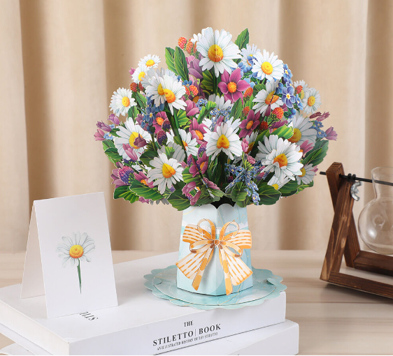 New Creative 3D Bouquet Holiday Blessing Paper Carving Greeting Card