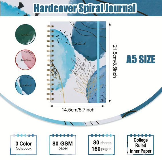 Promotional productHot Selling Spiral A5 Size Horizontal Grid Hardbound 3 Watercolor Design Back Pockets Notebook
